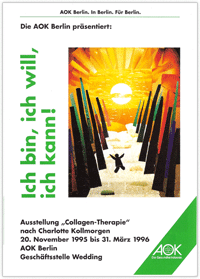 Die Technik der Collage, vorgefertigtes Material, Dinge aus dem bisherigen Zusammenhang zu nehmen - hier vorwiegend Material aus Illustrierten - und neu zusammen zu fügen, gibt jedem Teilnehmer die Chance, sich sein Bild spontan und differenziert zu gestalten, ohne an handwerklichem Unvermögen zu scheitern. Bekanntes wird aus neuen Perspektiven gesehen und souverän neu zusammengefügt. Genutzt wird die Umkehr des Werbeeffeks.